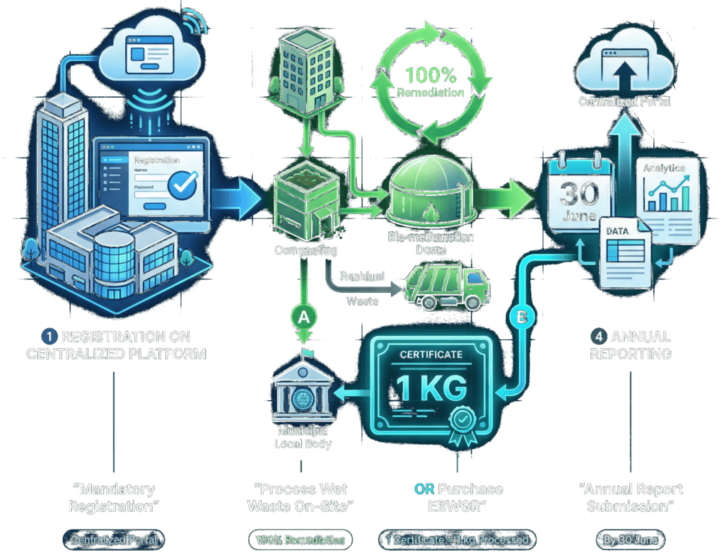 As per Solid Waste Management Rules, 2026 dated 27th January 2026, Bulk Waste Generators are required to purchase these certificate generated by local body (Eg. Municipal Corp, Panchayat) via a centralized portal in order to fulfil obligations.